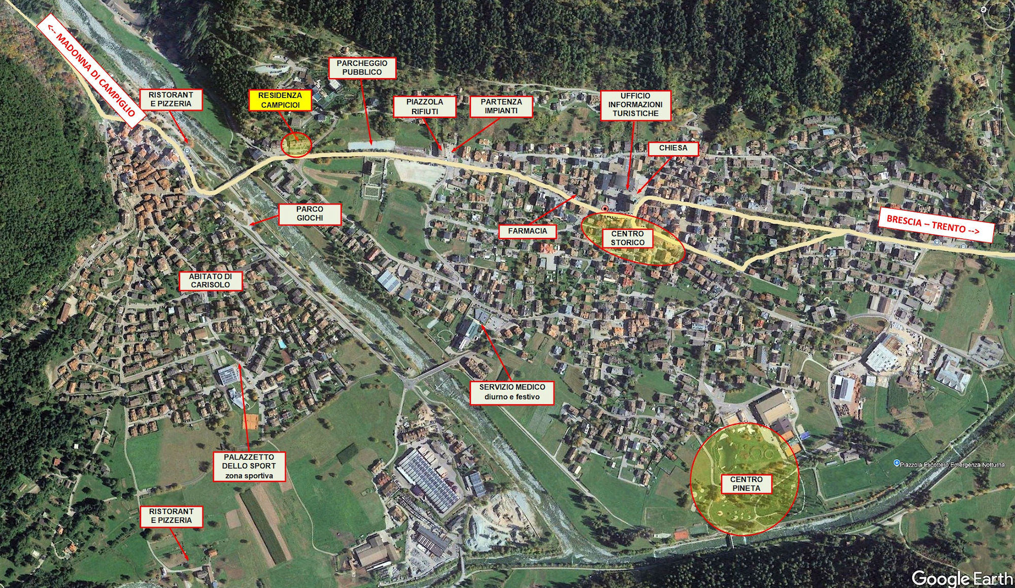 Lungo il viale principale, a 400 metri dal centro del paese, 200 metri dalla partenza e 300 metri dalla pista ciclabile, si trovano in un ottimo punto di partenza per escursioni a piedi e in mountain bike sulle dolomiti di Brenta e il Parco Naturale Adamello Brenta.