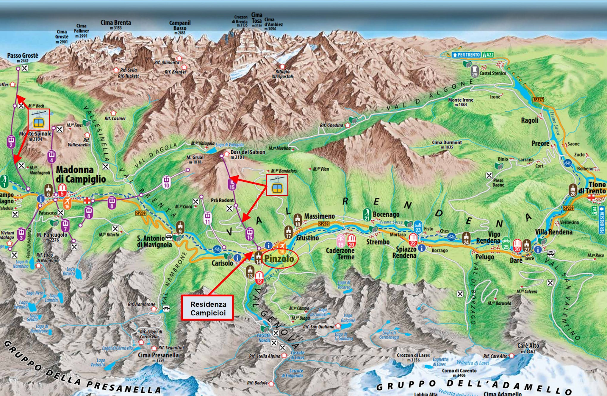 Gli appartamenti sono situati a Pinzolo, nell’ambito turistico Madonna di Campiglio – Pinzolo – val Rendena.